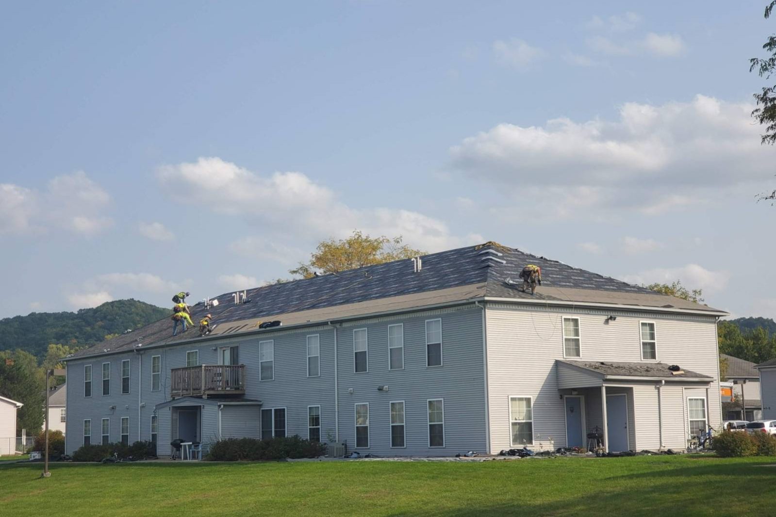 10 Buildings, 530 Sq., Installing Tamko Heritage, color Thunderstorm Grey. We are also keeping our Residential clients happy with their installs thanks to our amazing crews. First up, 40 Sq. Owens Corning color Teak.